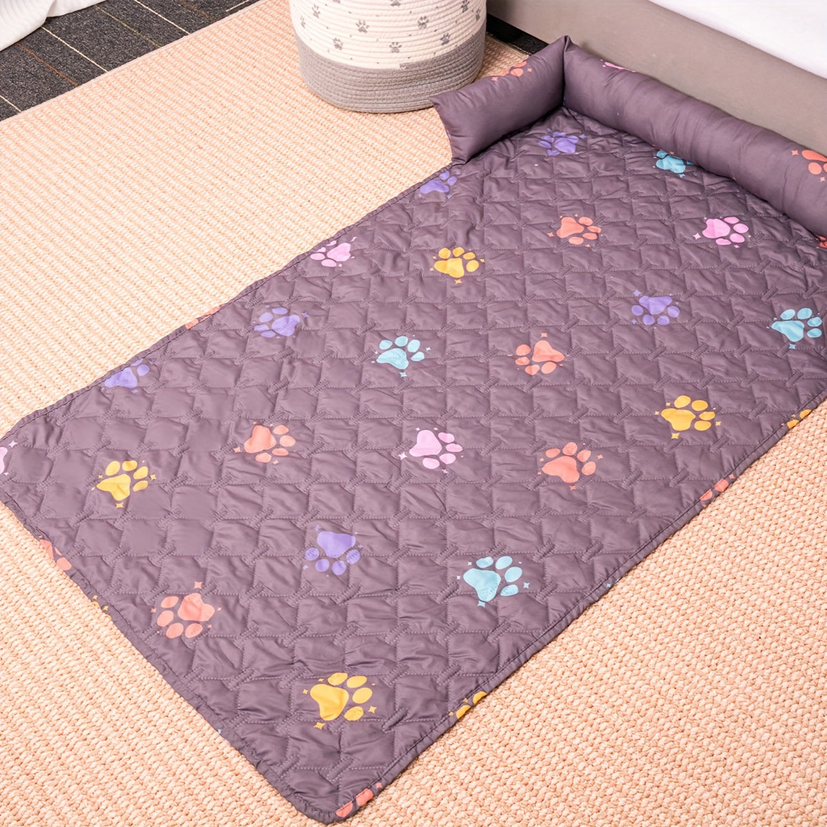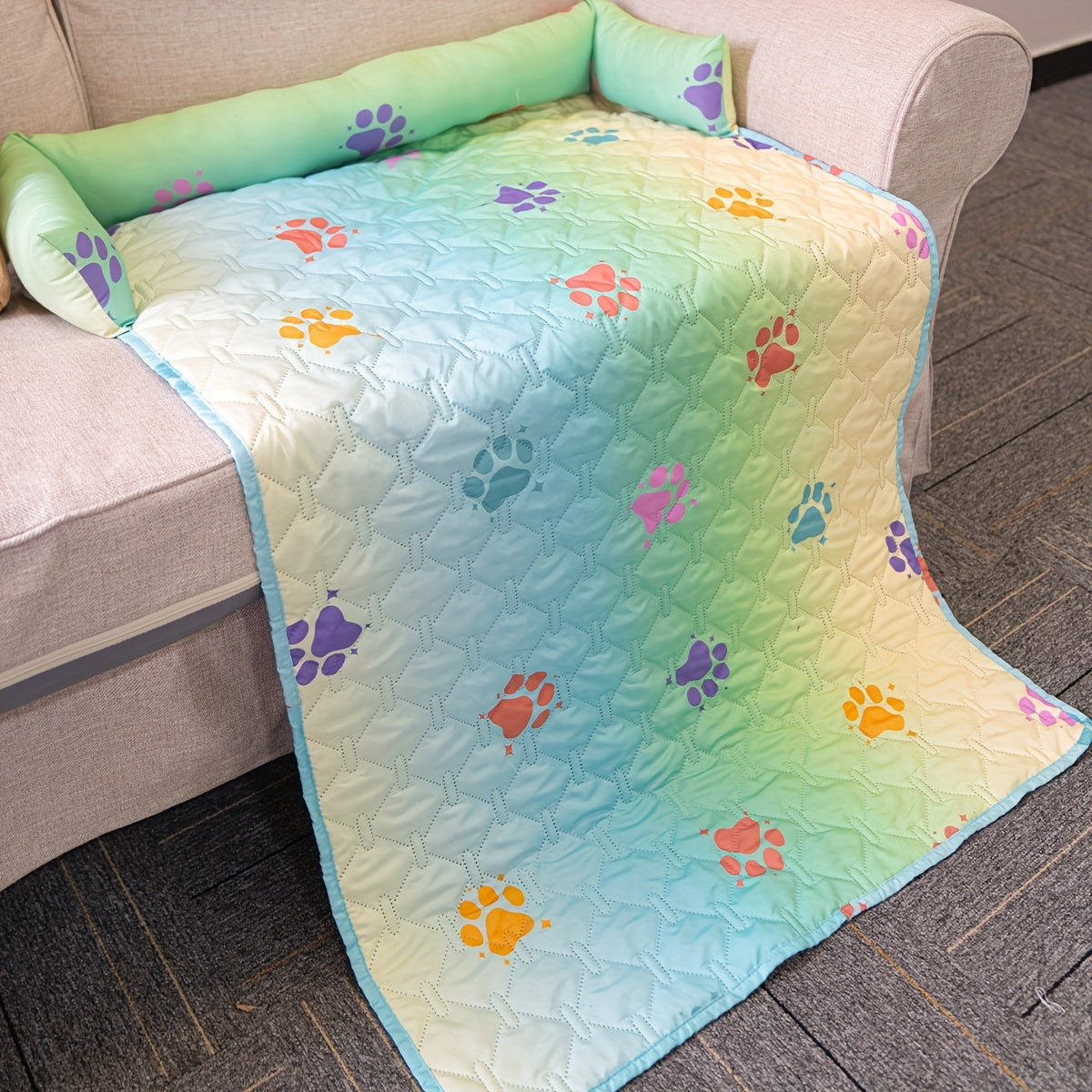 1pc Pet Sofa Bed Cover - Slip-Resistant, Waterproof, Washable, Reversible, and Reusable Mat with Built-in Changing Pad - Perfect for Pets and Dogs of All Sizes, Colorful Rainbow Dog Paw Design Furniture Cover