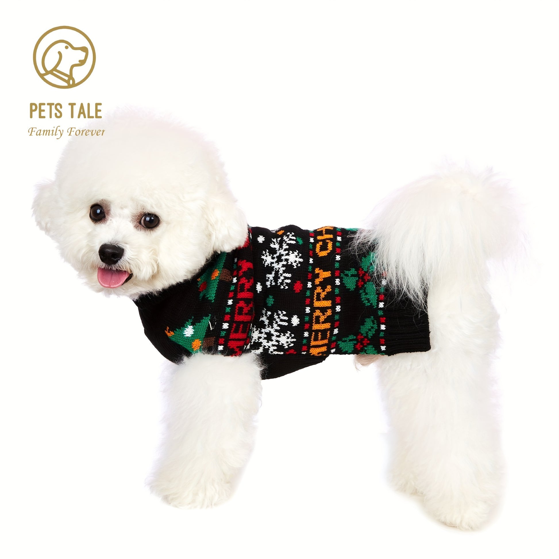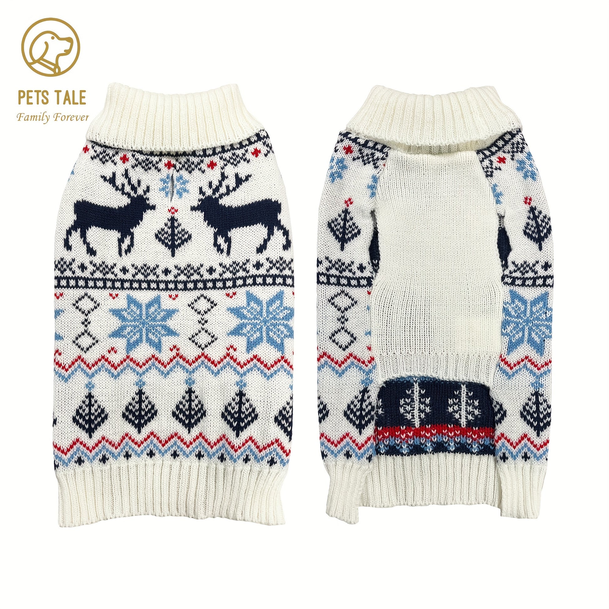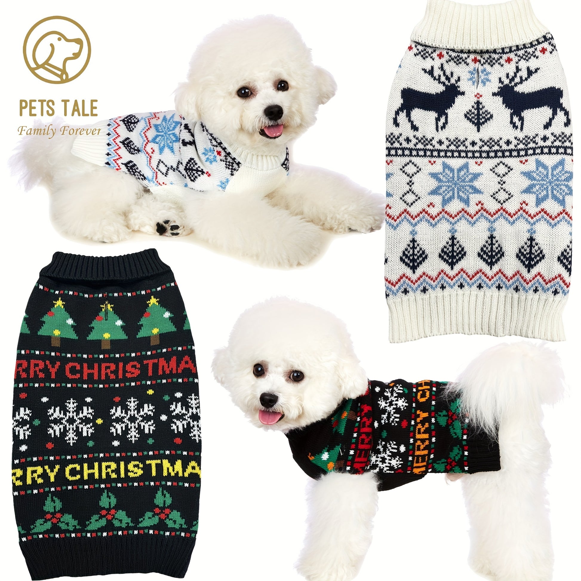 PETS TALE Christmas Sweater for Dogs - Festive Snowflake Reindeer & Merry Christmas Design, 100% Acrylic Machine-Washable Pullover for Small to Medium Dogs, Holiday Party Outfit